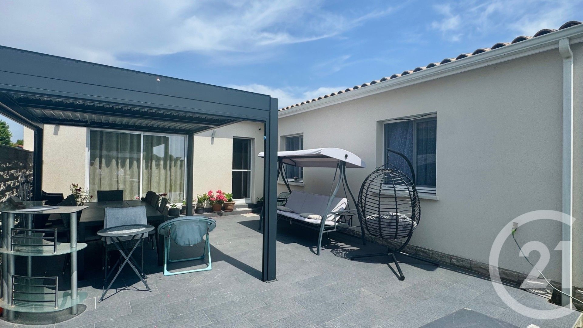 A l'extérieur, profitez d'une belle terrasse avec pergola bioclimatique électrique, idéale pour profiter des beaux jours.